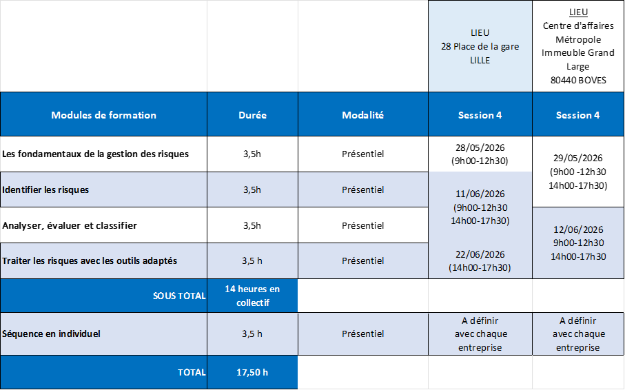 - Avoir identifié une ou plusieurs problématiques liées aux risques dans son activité professionnelle pour maximiser l'impact des ateliers pratiques